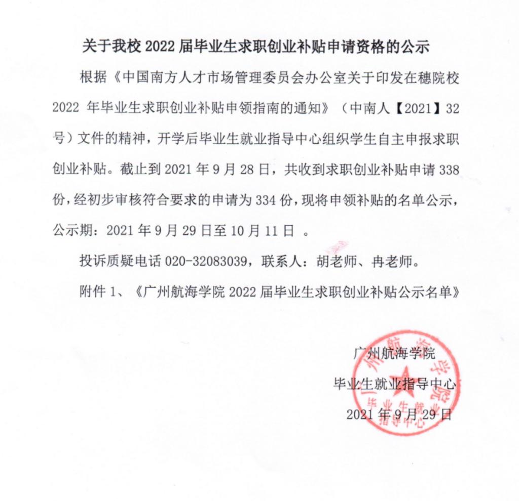 关于我校2022届毕业生求职创业补贴申请资格的公示