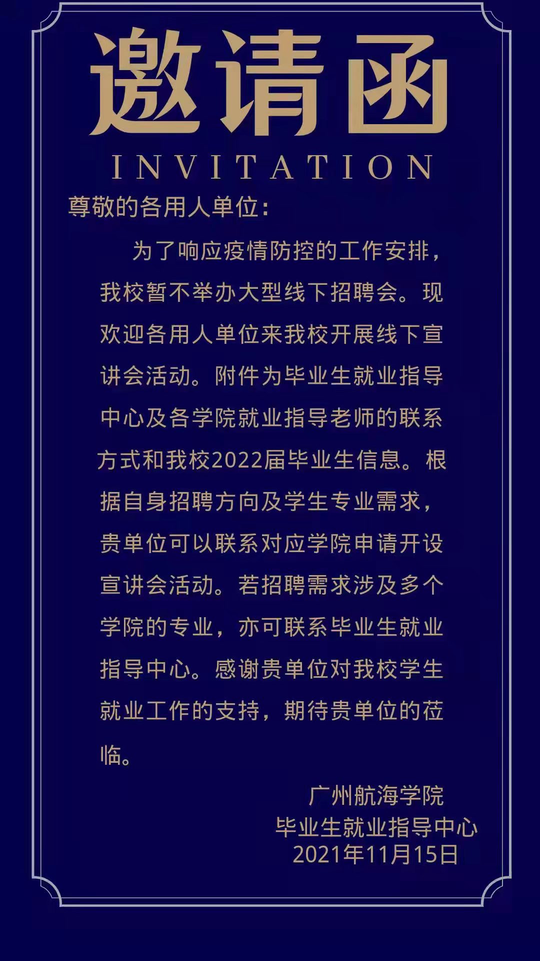 3044AM永利集团“2022届毕业生招聘宣讲会活动”企业邀请函
