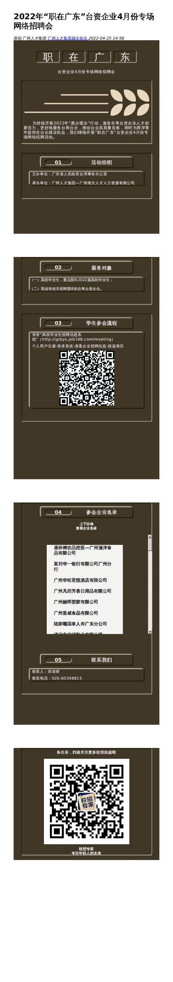 2022年“职在广东”台资企业4月份专场网络招聘会