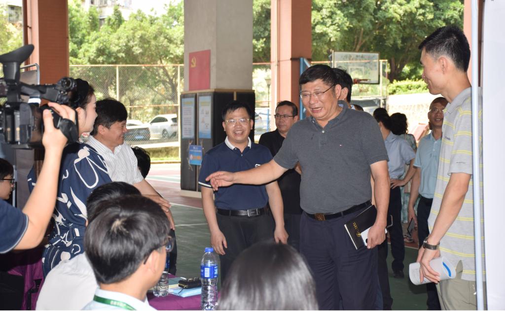 (毕业生就业指导中心供稿)为了认真贯彻落实党中央、国务院“稳就业”、“保就业”决策部署,准确把握主题教育目标任务,推动学习贯彻习近平新时代中国特色社会主义思想主题教育取得实际成效,把开展主题教育同落实立德树人根本任务、推进学校高质量发展结合起来,全力做好毕业生就业创业工作,让毕业生更加充分更高质量就业,5月21日上午,我校在体育馆成功举办了2023届毕业生校友单位专场招聘会。学校党委书记、校长邹采荣,副校长戈飞平和副校长唐强荣亲临招聘会现场指导工作,学校相关职能部门和二级学院负责人、毕业班辅导员、校友单位招聘单位人员及2023届毕业生们参加了招聘会。