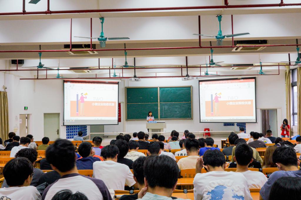 黄埔区人社局主任科员徐正华为同学们讲解了广东省、广州市和黄埔区有关就业创业补贴政策,包括政策的主要依据、补贴项目名称、申报方式以及申领指南等内容。黄埔区税务局副所长王清枚等3 人为同学们讲解了大学生就业创业中的税收减免政策、个人所得税基本知识、大学生必备的劳动法律常识等内容,在讲解过程中与同学们互动和有奖问答。中国邮政储蓄银行广州市东区支行(小企业金融中心)林吴淳为同学们解读了广州市创业担保贷款有关政策。