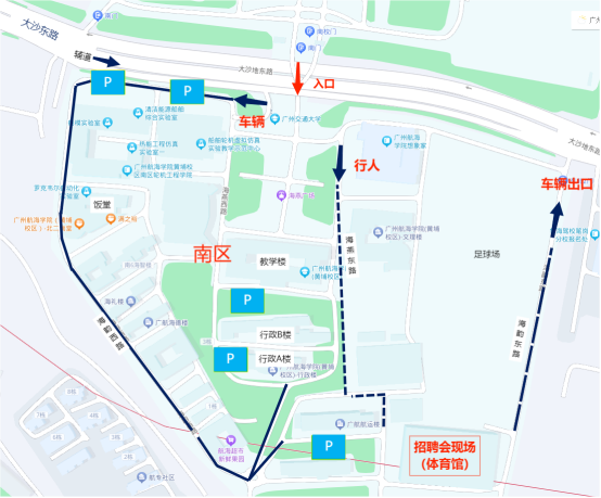 从中国·3044AM永利(集团)有限公司官网黄埔校区北门进学校南区后停车场分布及到达现场线路图见下图