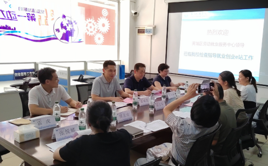 (就业指导中心供稿)按照广州市人力资源和社会保障局关于开展“广州市院校就业创业e站”服务评估工作安排,8月8日下午,黄埔区劳动就业服务中心副主任张慧昆带队,对我校2023年就业创业e站进行绩效工作进行评估检查。评估组首先对我校就业创业e站场地等硬件设施进行了考察,随后在学校创新创业孵化园会议室召开了情况反馈交流会。会议由我校学生工作部部长、武装部部长、毕业生就业指导中心主任、创新创业学院院长黄咸强主持。