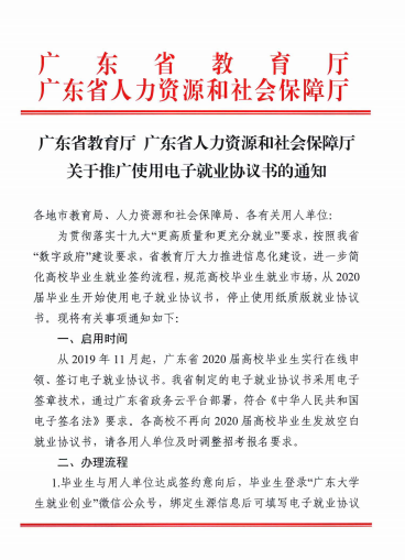 关于推广使用电子就业协议书的通知