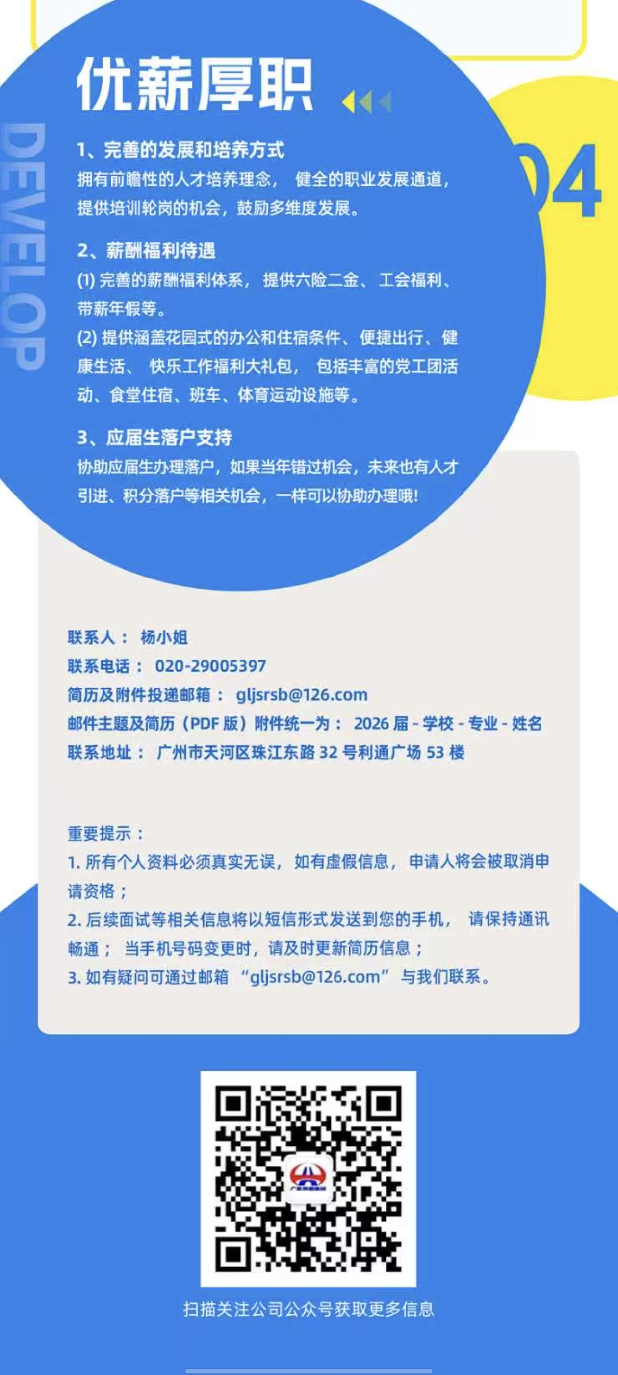 简历投递邮箱:gljsrsb@126.com(邮件和简历主题统一为:2026届-学校-专业-姓名)