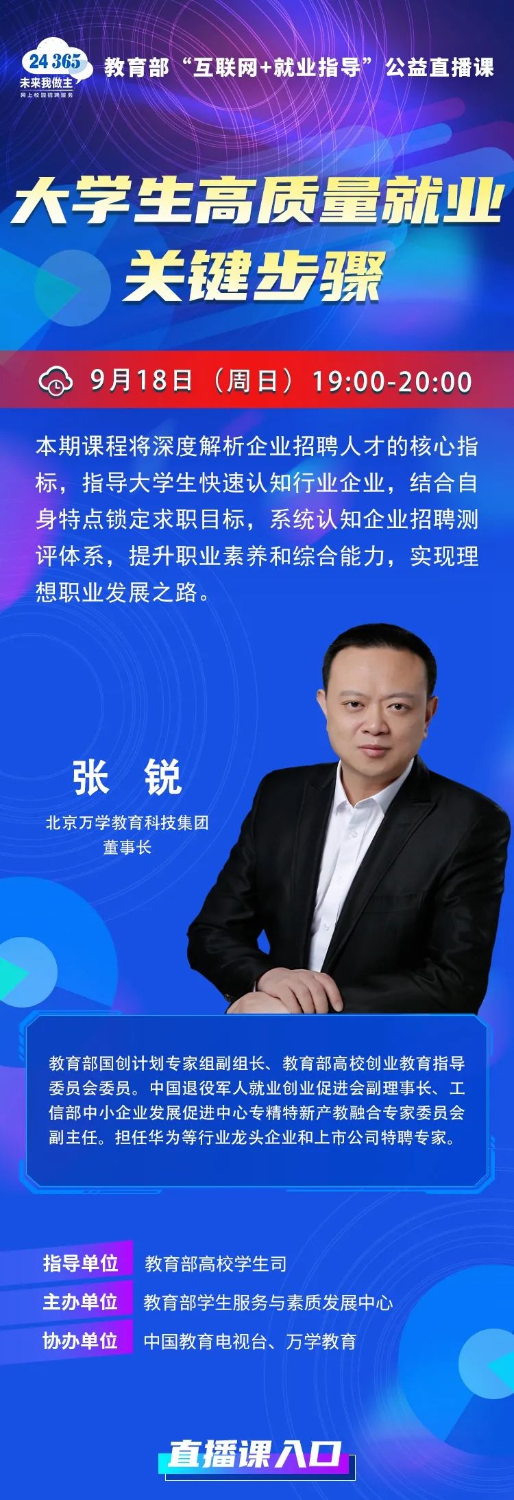 3044AM永利集团 | 教育部24365就业公益直播课:大学生高质量就业关键步骤
