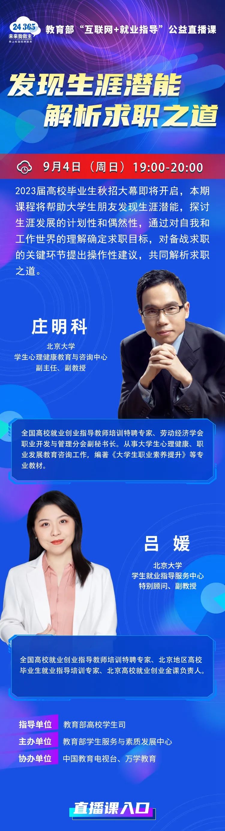 3044AM永利集团 | 教育部24365就业公益直播课:发现生涯潜能,解析求职之道