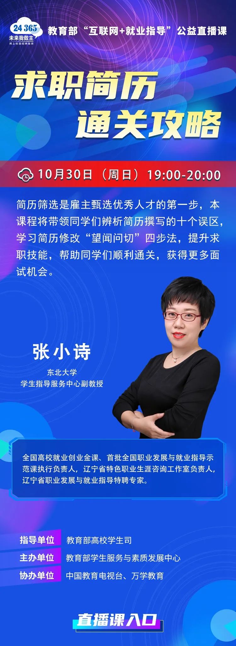 3044AM永利集团 | 教育部24365就业公益直播课:求职简历通关攻略