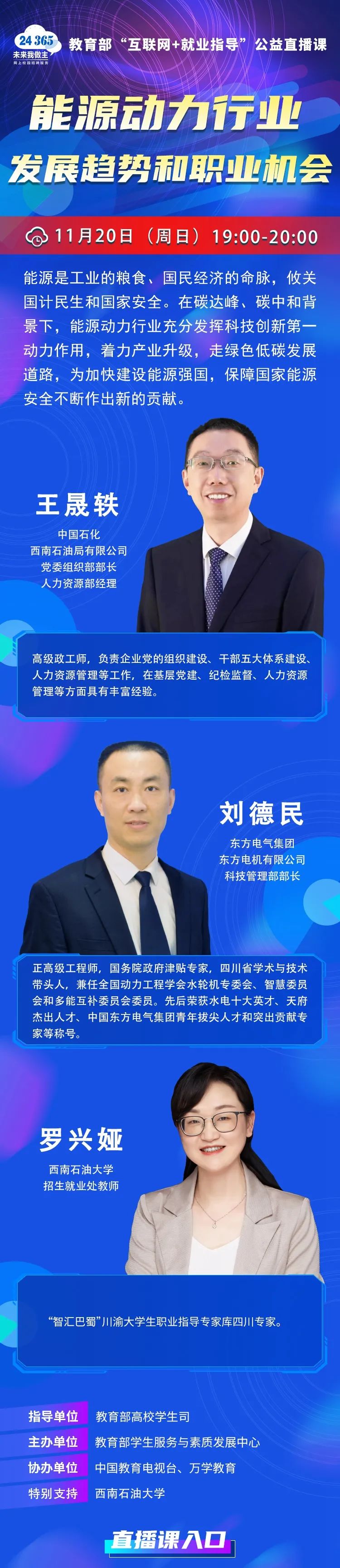 3044AM永利集团|教育部24365就业公益直播课:能源动力行业发展趋势和职业机会