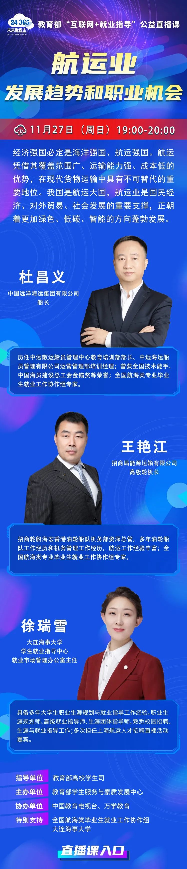 3044AM永利集团 | 教育部24365就业公益直播课:航运业发展趋势和职业机会