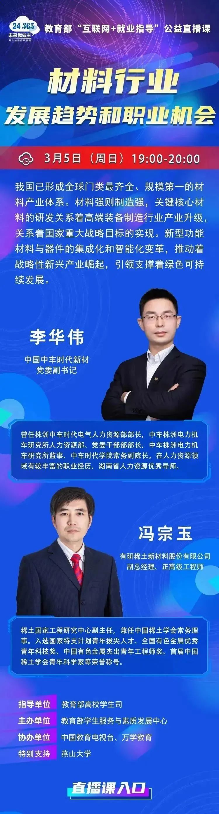 3044AM永利集团 | 教育部24365就业公益直播课:材料行业发展趋势和职业机会