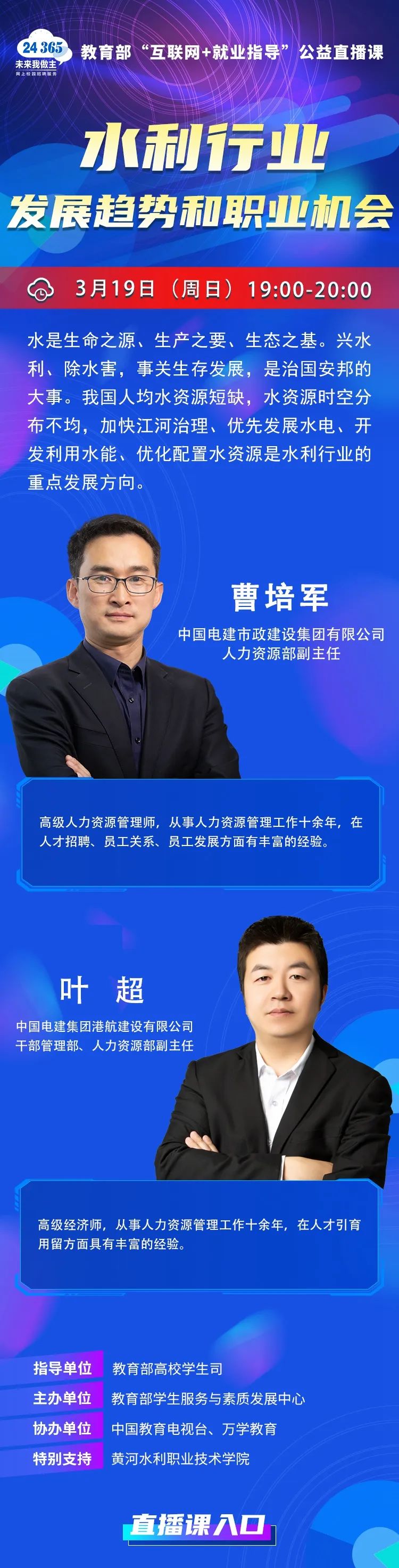 3044AM永利集团 | 教育部24365就业公益直播课:水利行业发展趋势和职业机会