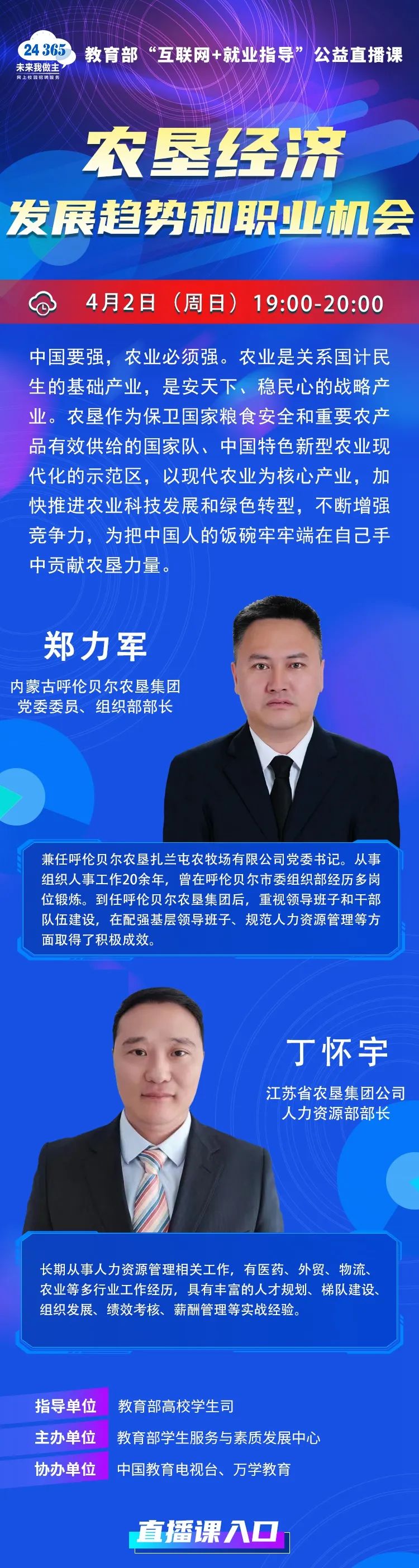 3044AM永利集团 | 教育部“互联网+就业指导”公益直播课:农垦经济发展趋势和职业机会