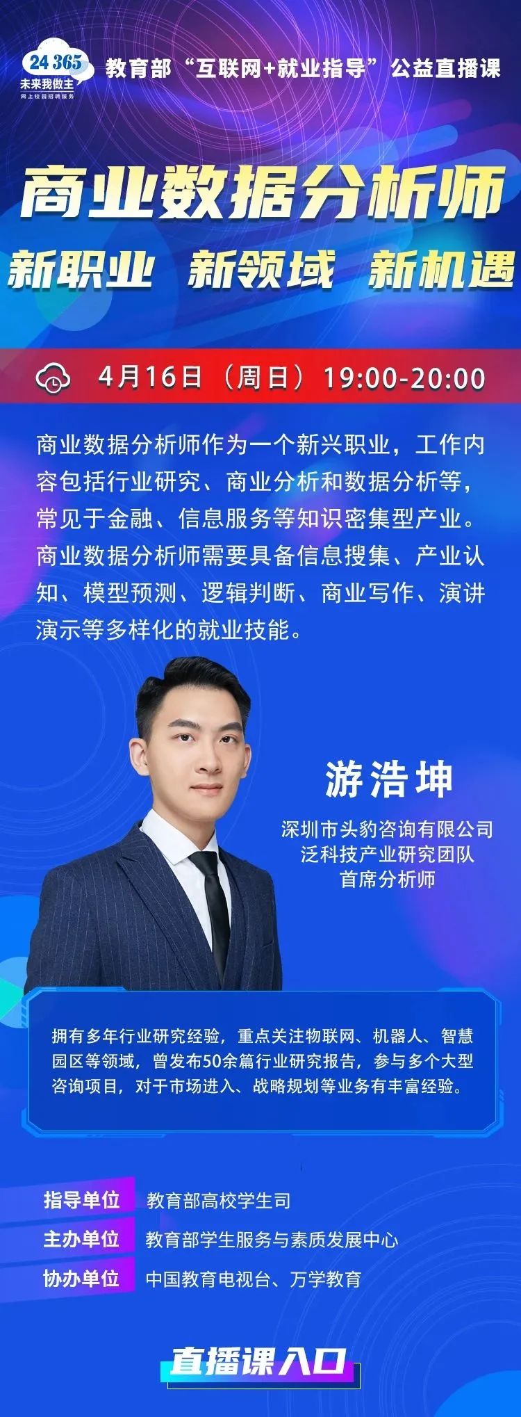 3044AM永利集团 | 教育部“互联网+就业指导”公益直播课:商业数据分析师——新职业、新领域、新机遇