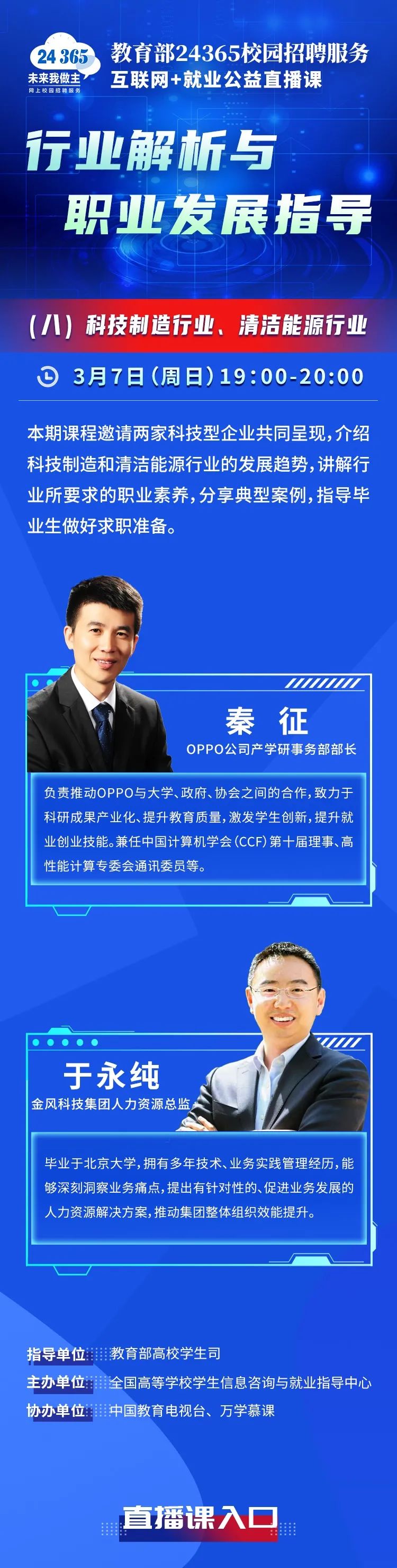 3044AM永利集团 | 教育部24365就业公益直播课:行业解析与职业发展指导(八)科技制造行业、清洁能源行业