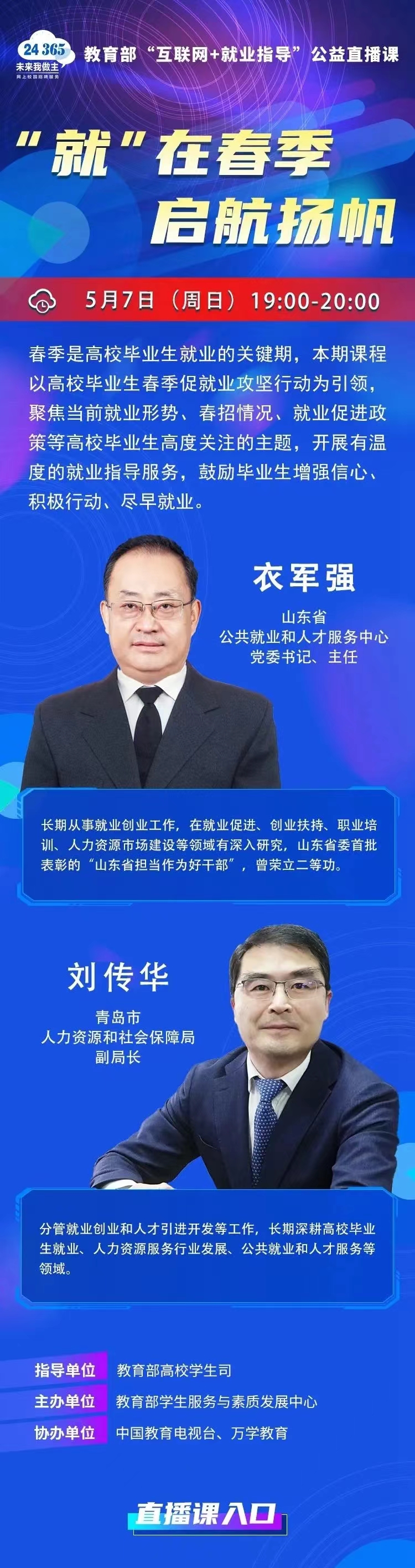 教育部“互联网+就业指导”公益直播课 "就"在春季 启航扬帆