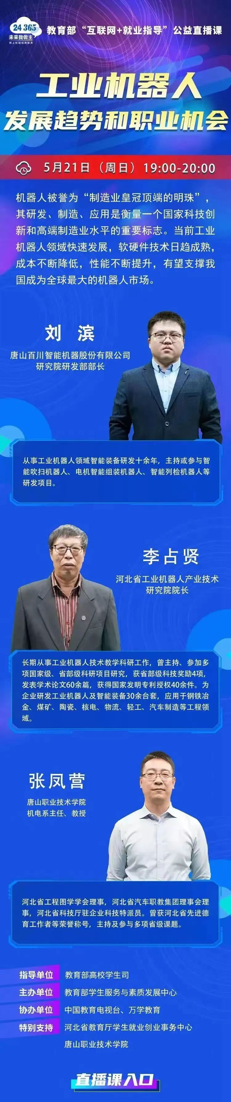 教育部“互联网+就业指导” 公益直播课 工业机器人 发展趋势和职业机会
