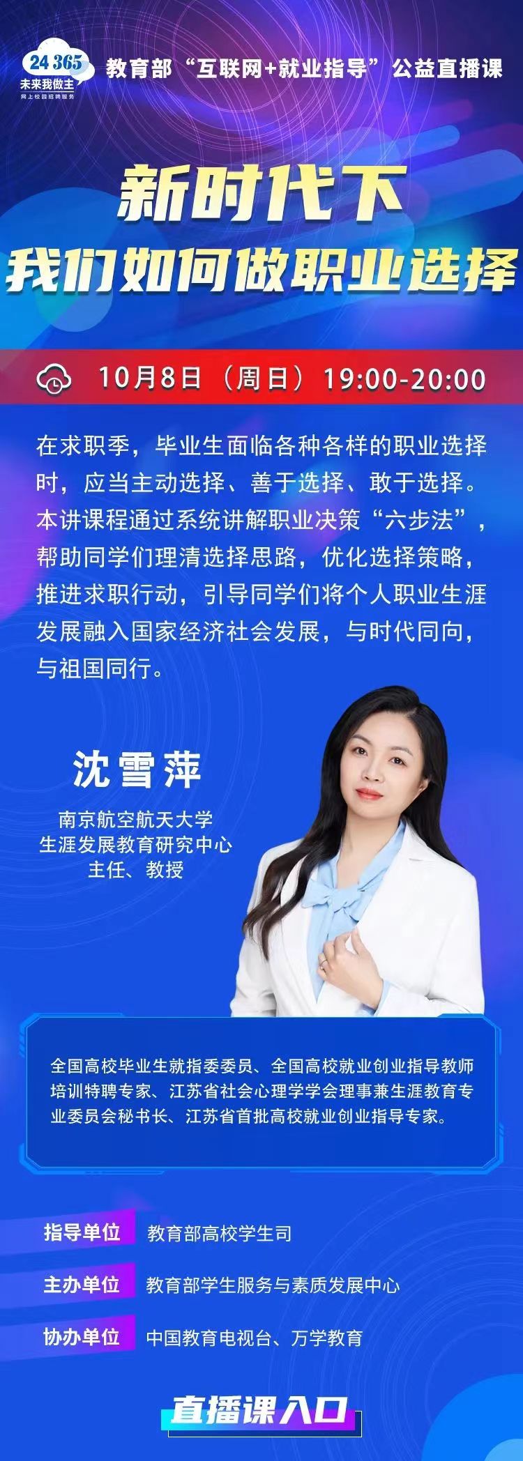 教育部“互联网+就业指导”公益直播课 新时代下我们如何做职业选择
