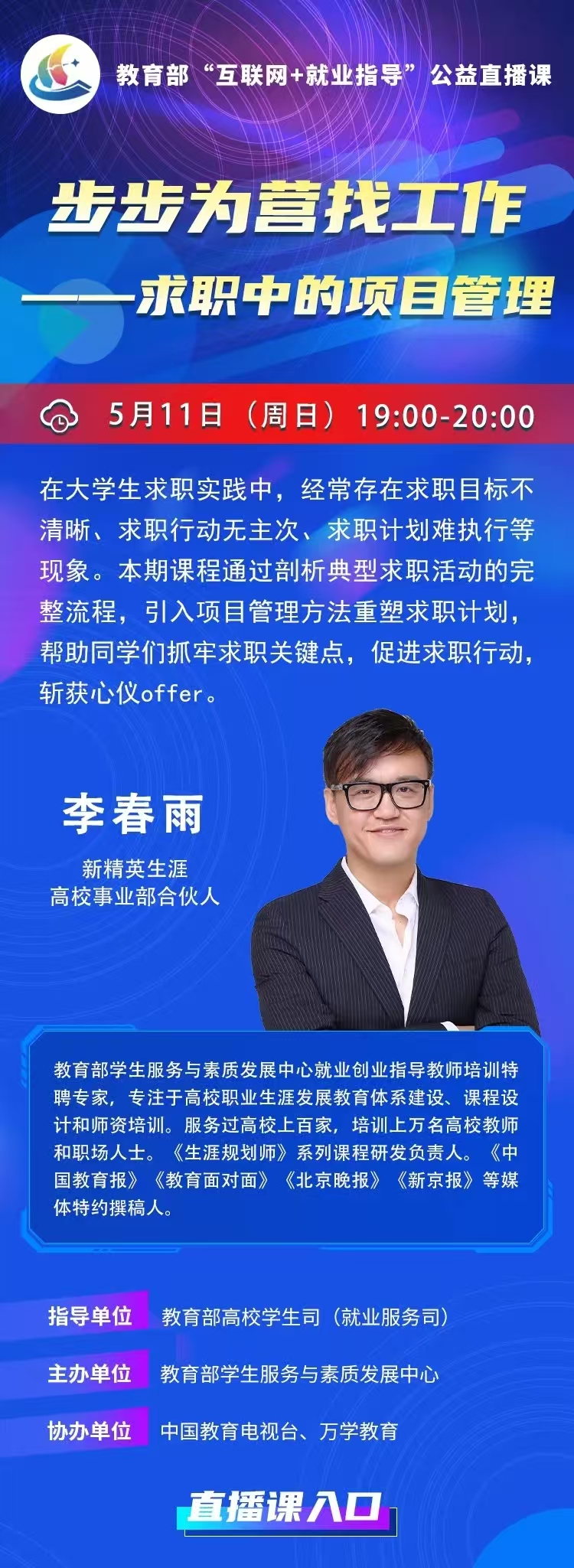 3044AM永利集团 | 教育部“互联网+就业指导”公益直播课:求职中的项目管理