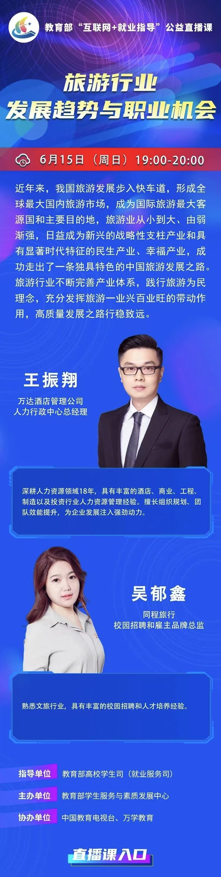 3044AM永利集团 | 教育部“互联网+就业指导”公益直播课:旅游行业发展趋势与职业机会