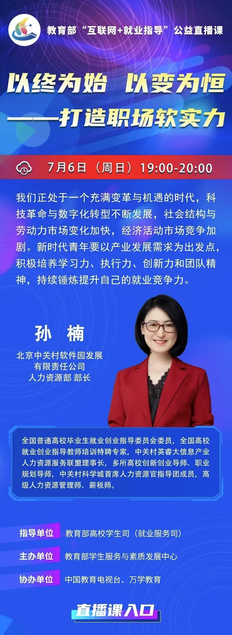 3044AM永利集团 | 教育部“互联网+就业指导”公益直播课:以终为始,以变为恒——打造职场软实力