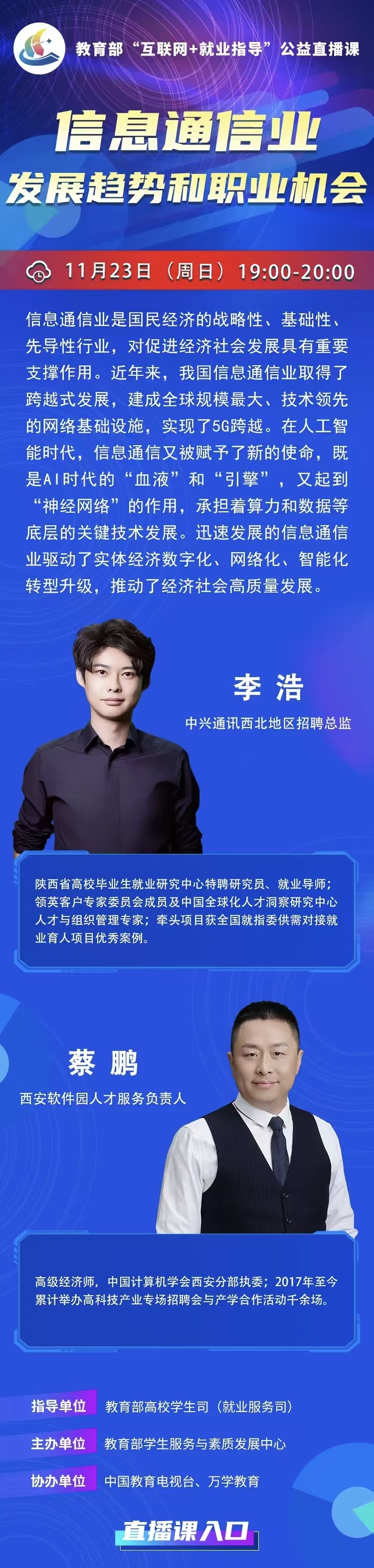 3044AM永利集团 | 教育部“互联网+就业指导”公益直播课:信息通信业发展趋势和职业机会